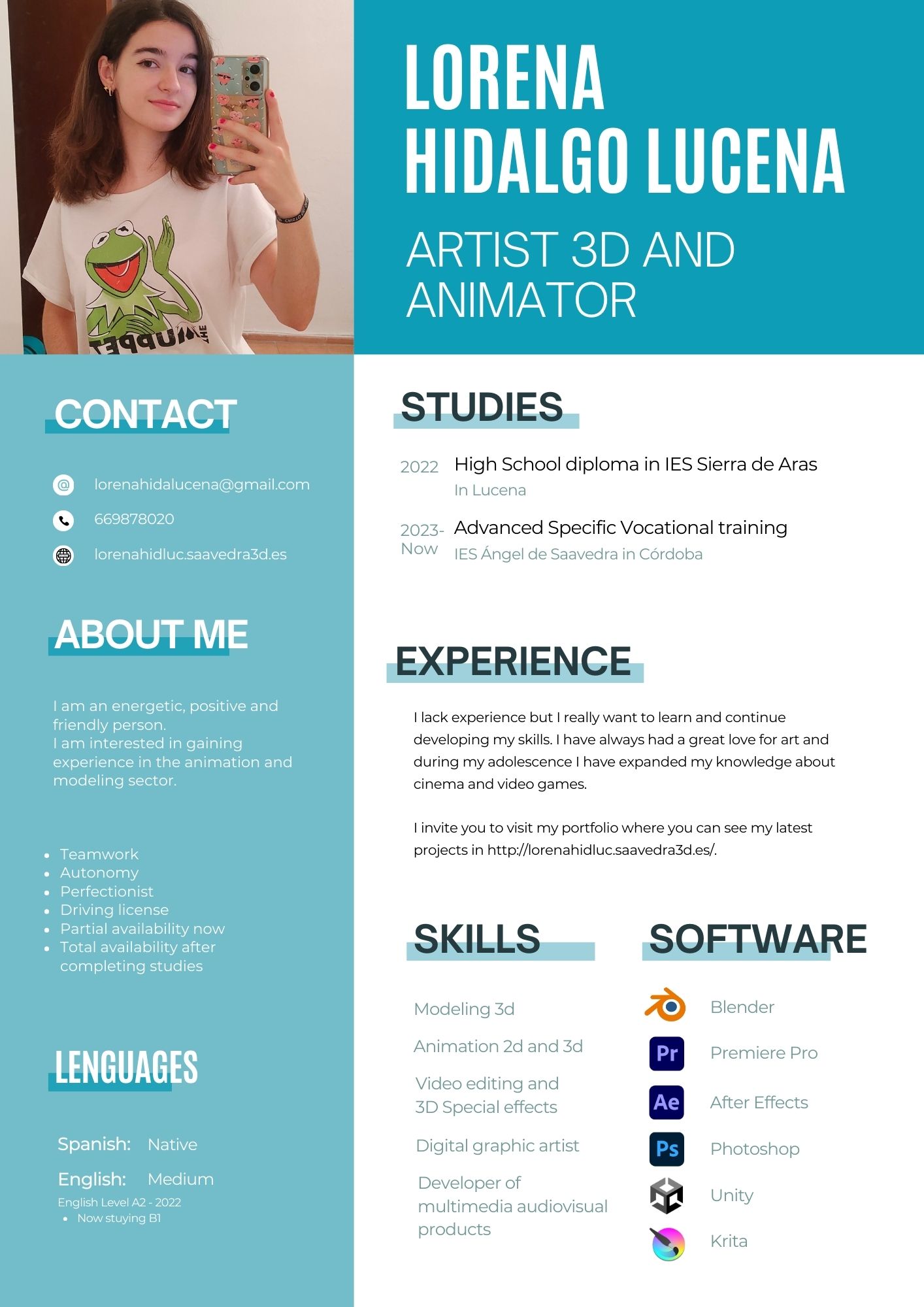 Hello My name is Lorena. I have a degree in 3D Animation, games and interactive environments.